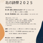 - 【会員イベント情報】北海道詩人協会「北の詩祭2025」会員イベント情報を更新しました。詳しくは「会員イベント情報」をご覧ください。
