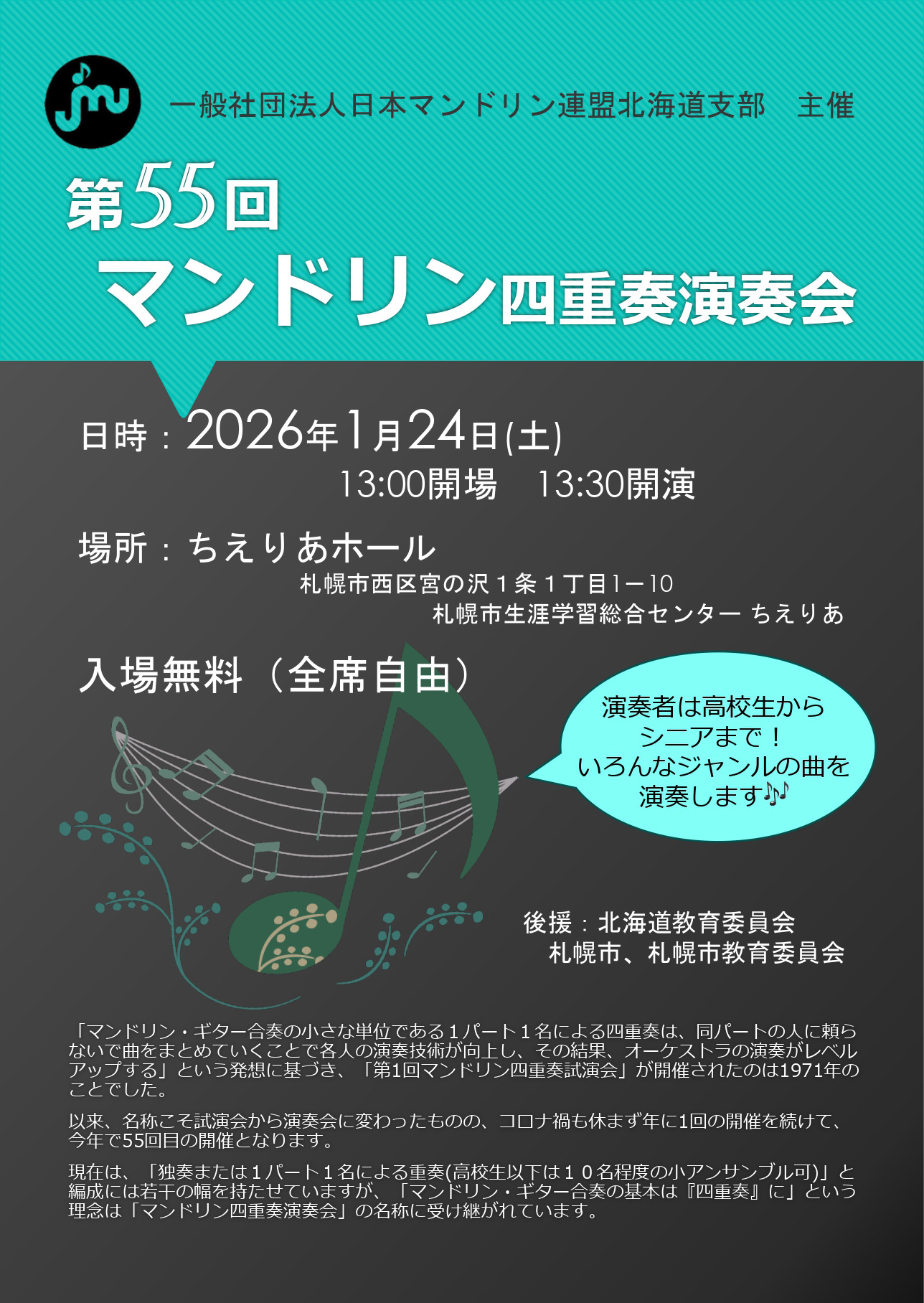 主催/一般社団法人日本マンドリン連盟北海道支部